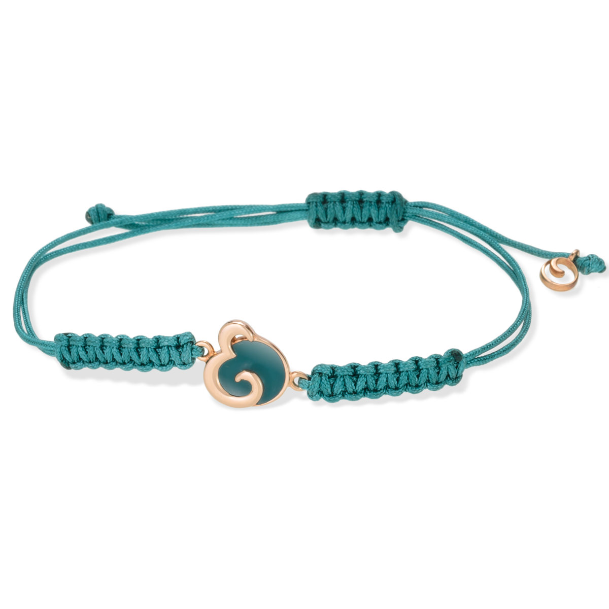 Βραχιόλι με μονόγραμμα E από Ασήμι 925 με ροζ χρύσωμα, πετρόλ σμάλτο και κορδόνι.