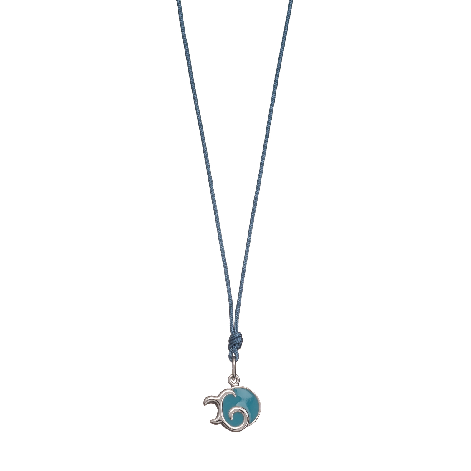 Kολιέ με Μονόγραμμα Χ από επιπλατινωμένο Aσήμι 925, γαλάζιο σμάλτο και κορδόνι.