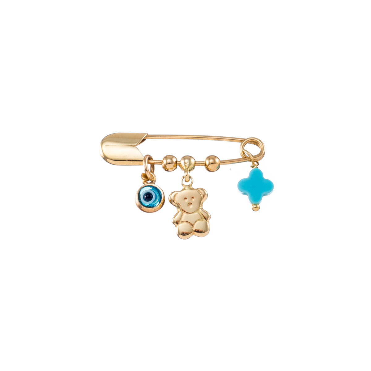 Παιδική παραμάνα από Χρυσό 14 Καρατίων (Κ14) με ματάκι, αρκουδάκι και σταυρό.