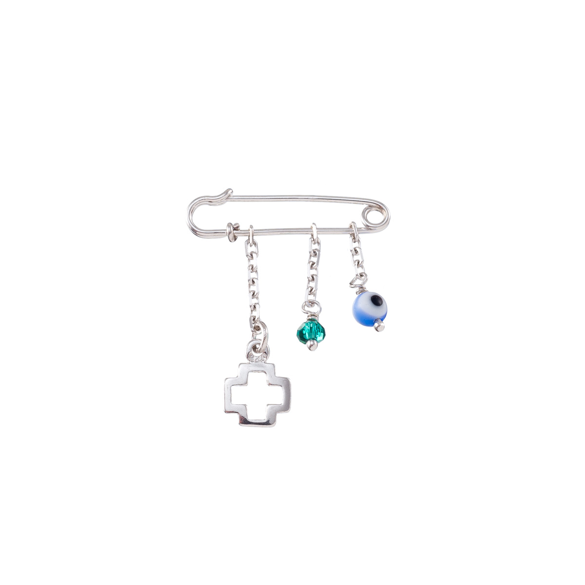 Παιδική παραμάνα με σταυρό και ματάκι από ασήμι 925