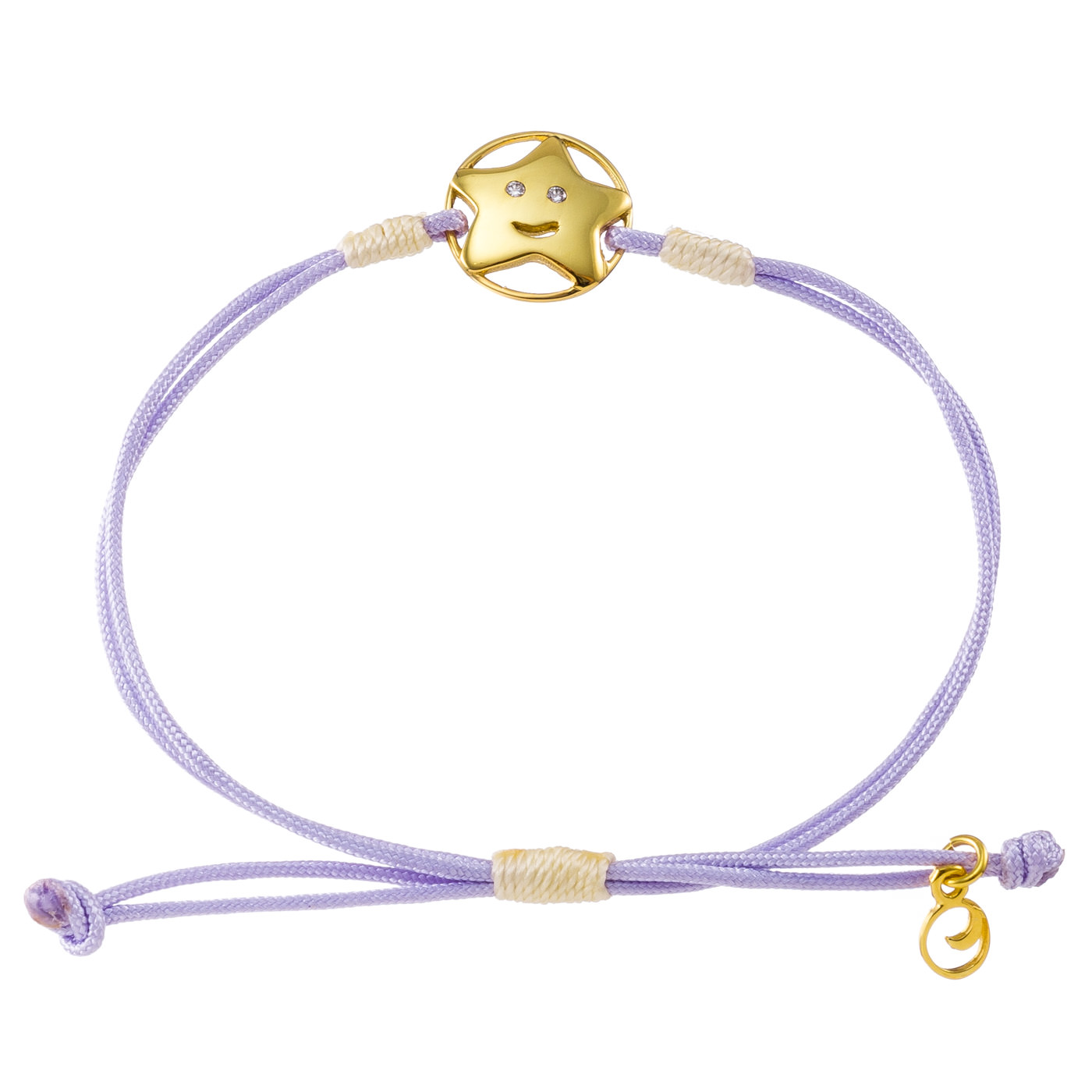 Παιδικό βραχιόλι για κοριτσάκι με αστεράκι από ασήμι 925 επιχρυσωμένο, λευκά ζιργκόν, λιλά κορδόνι και κούμπωμα μακραμέ ρυθμιζόμενο, μήκους 25 cm!